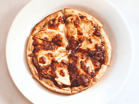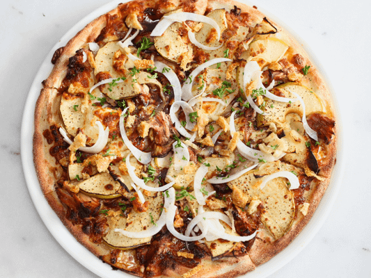 BBQ sauce, mozzarella, pulled pork, caramelised onion, apple & black pepper, with fennel & pork cracklings