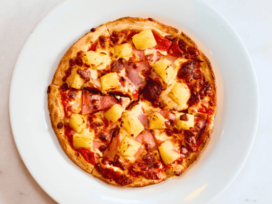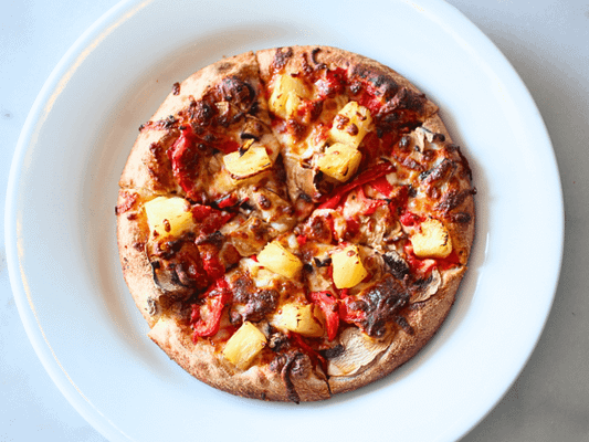 Pizza sauce, mushroom, pineapple, sweet capsicum & mozzarella