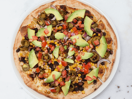 Hummus, chipotle, black beans, jalapenos, corn, chilli, red onion, vegan cheese, fresh avocado & pico de gallo